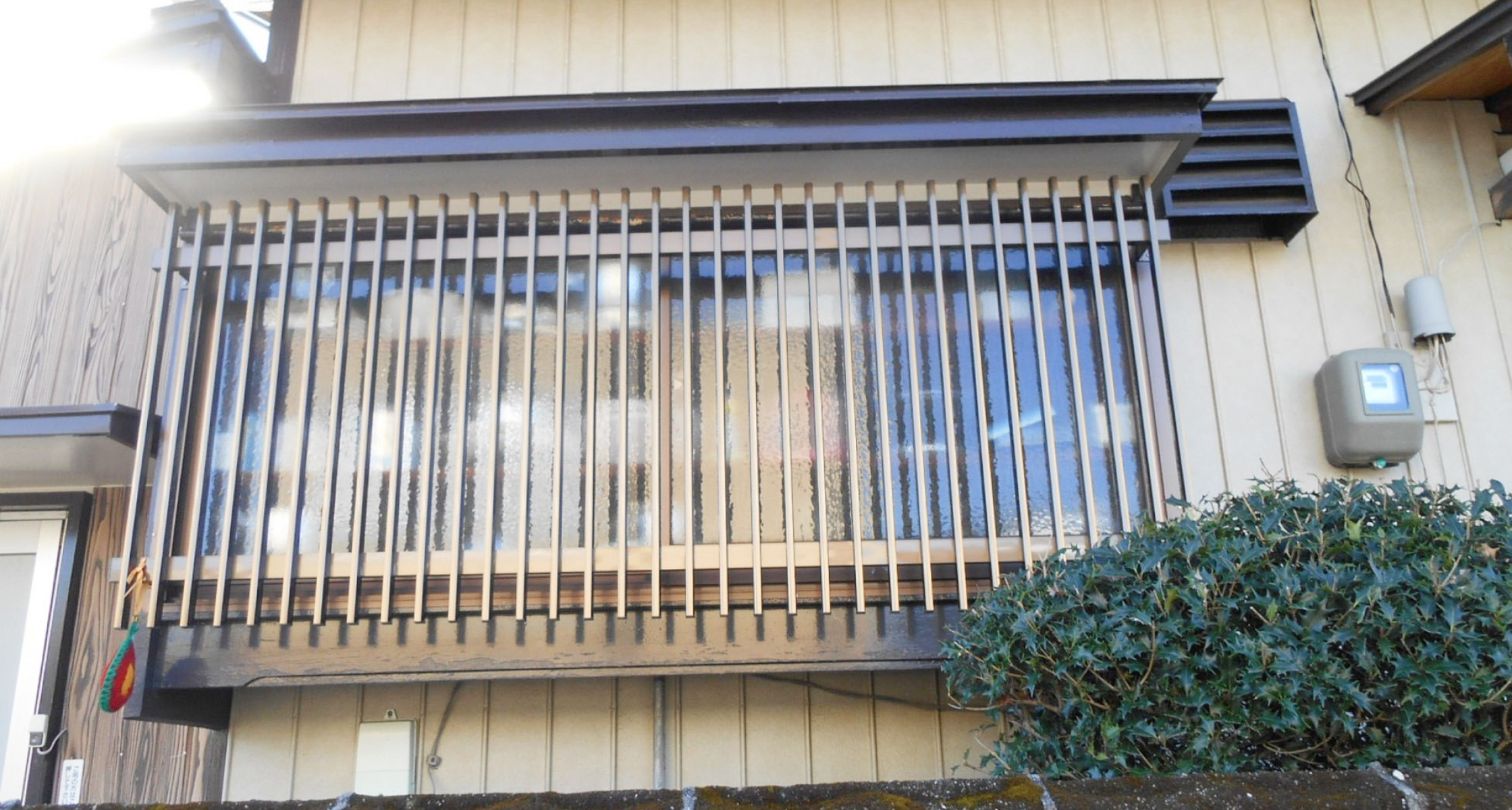 飛散物のガラスへの直撃を避けるために格子の間隔を通常より狭くしています。