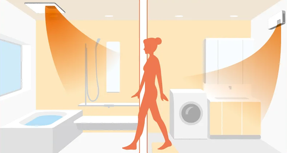 ヒートショック対策に役立つ浴室暖房機能付き換気乾燥機です。冬場に 入浴前や脱衣所・浴室をしっかり暖められる暖房機能を備え、急激な温度差による血圧変動リスクを和らげる効果が期待できます。事前に浴室を温めておくことで、入浴時の“ヒヤッ”とした寒さを軽減し、体への負担を抑える使い方ができます。