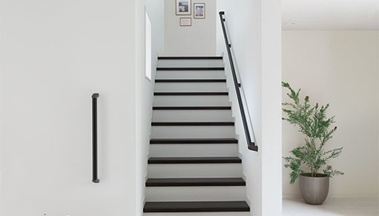 室内用階段・手すりは、安心・安全を意識した豊富なラインナップが魅力です。壁に取り付ける壁付け手すりは、シンプルでインテリアに馴染むラウンド・スクエア形状が選べ、握りやすい設計で転倒予防に役立ちます。階段・手すりを住まいの雰囲気に合わせてトータルコーディネートできます。